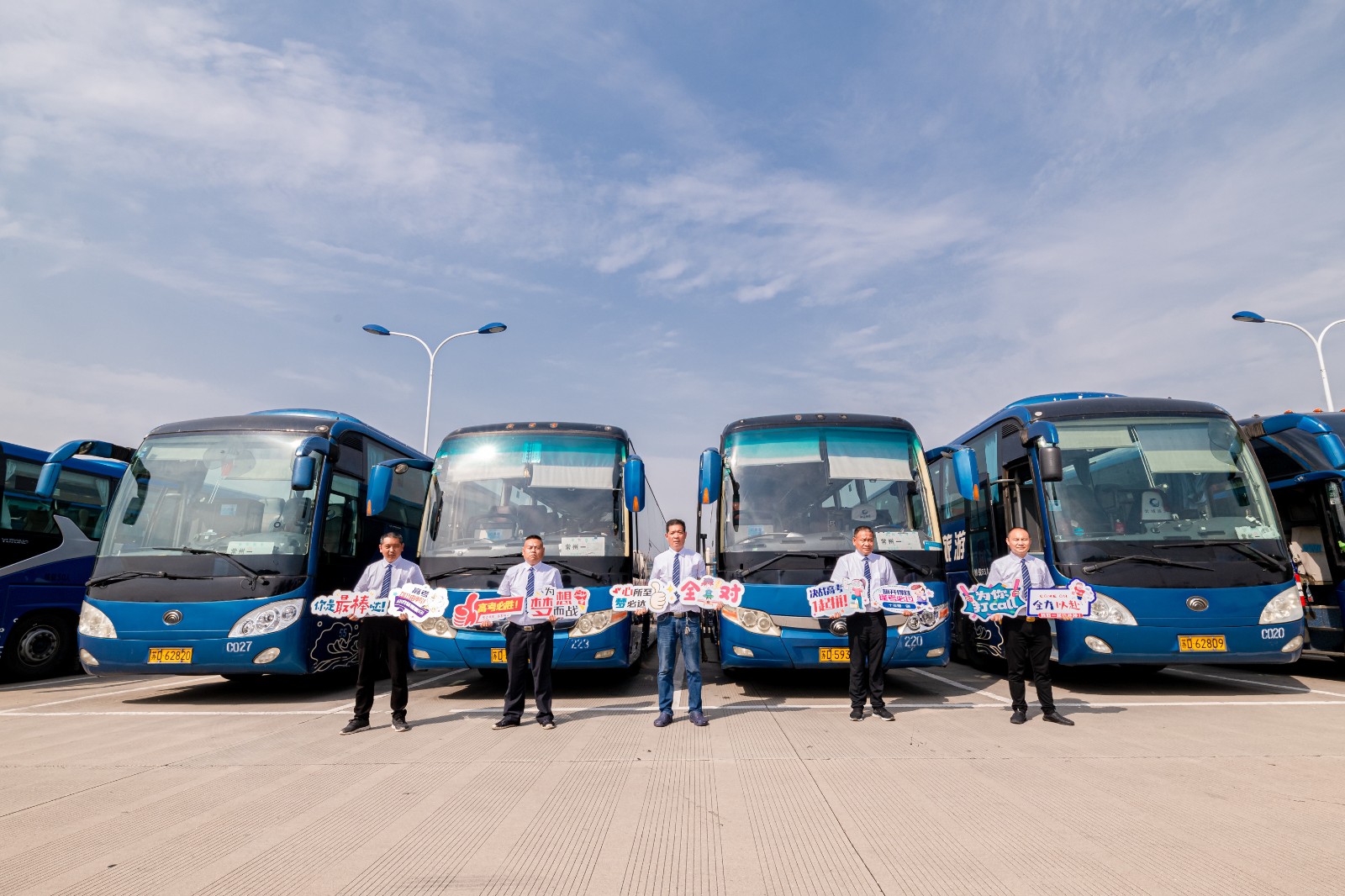 優(yōu)質(zhì)高考,服務(wù)更人性。所有車輛按照標(biāo)準(zhǔn)做好衛(wèi)生保潔工作,全程循環(huán)通風(fēng),提供一個(gè)綠色溫馨的乘車環(huán)境。所有駕駛員標(biāo)準(zhǔn)著裝,笑臉迎客,引導(dǎo)學(xué)生上車,在送考途中為考生播放相聲、小品等娛樂性的節(jié)目,為考生減壓。公司還精心制作了“高考必勝、為你打call”等標(biāo)牌,為考生助力加油。駕駛員將嚴(yán)格按照規(guī)定時(shí)間發(fā)車,全程勻速行駛,確保安全準(zhǔn)點(diǎn)將考生送達(dá)指定考場(chǎng)??忌萝嚭螅{駛員將及時(shí)對(duì)車內(nèi)進(jìn)行細(xì)致的檢查,防止出現(xiàn)“馬大哈”學(xué)生丟失文具的情況出現(xiàn)。公司還安排安管人員帶隊(duì),做好現(xiàn)場(chǎng)指揮管理,配備應(yīng)急車輛及機(jī)動(dòng)駕駛員,做好應(yīng)急保障。